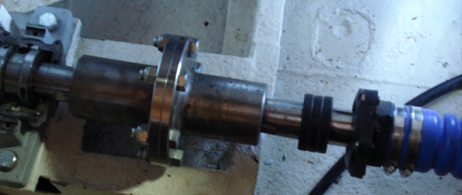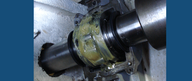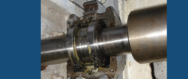 Het schroefas lager komt binnen voor onderhoud. Daarnaast wordt een waterinjectie op het watergesmeerd lager geïnstalleerd. Eerst wordt het schroefas lager gedemonteerd: